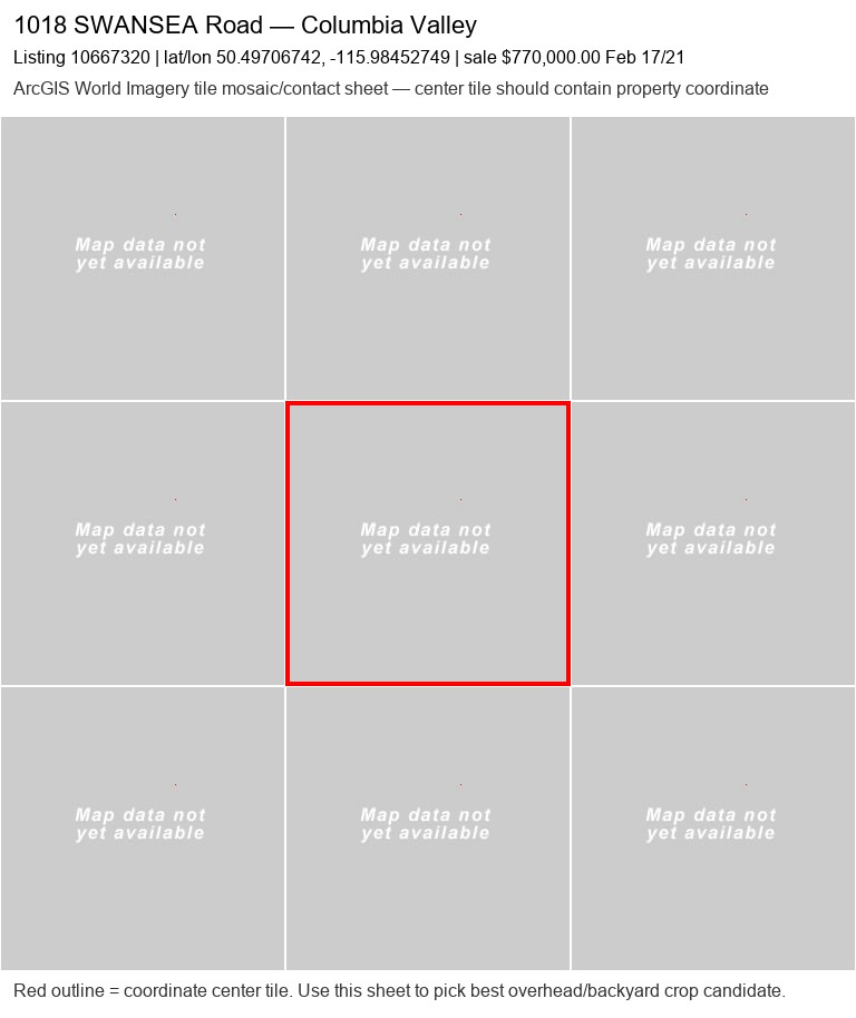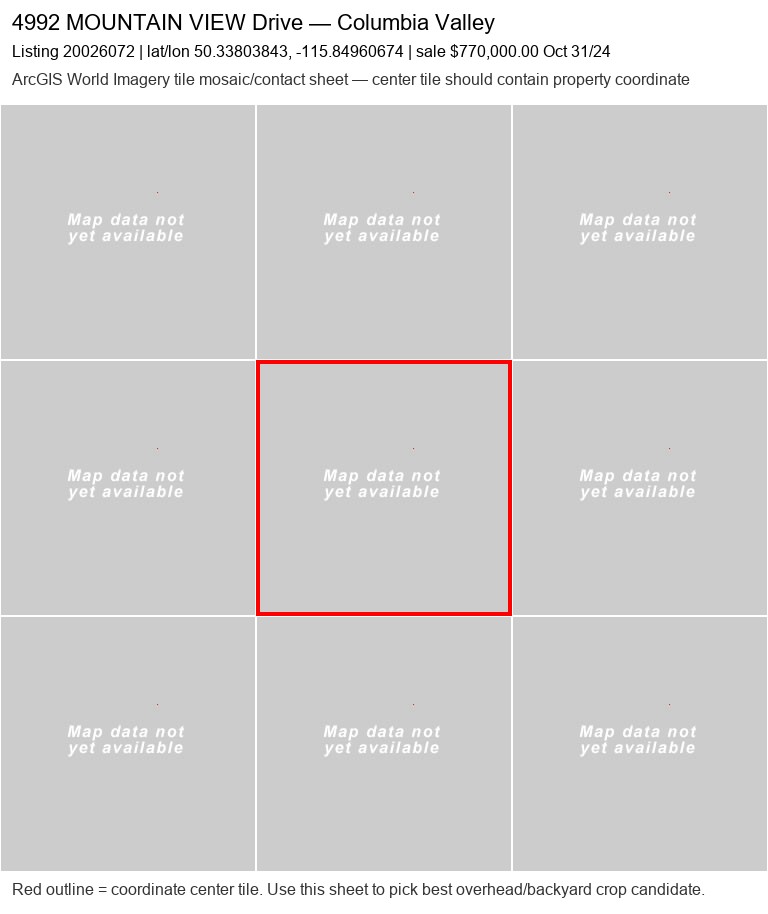 | 438 ALPINE Crescent20048760 | ArcGIS overhead unavailable | 1,3,2,4 | no | 0 / 9 | — | — | listing |