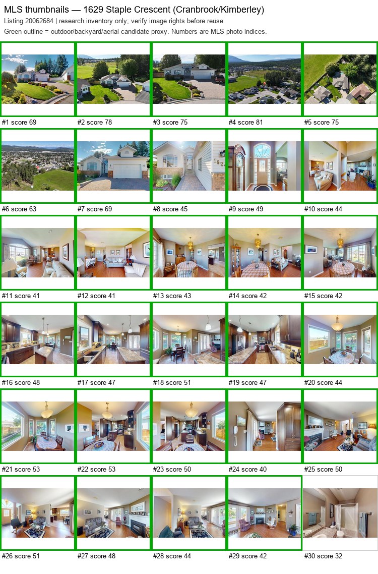 | 1629 Staple Crescent20062684 | MLS aerial/elevated | 5,2,3,1,4,6 | yes | 0 / 9 | — | — | listing |