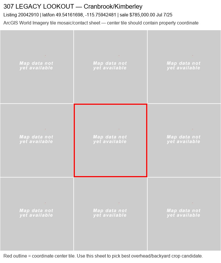 | 317 Legacy Lookout20071254 | ArcGIS overhead unavailable | — | No | 0 / 9 | — | — | listing |