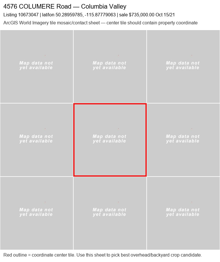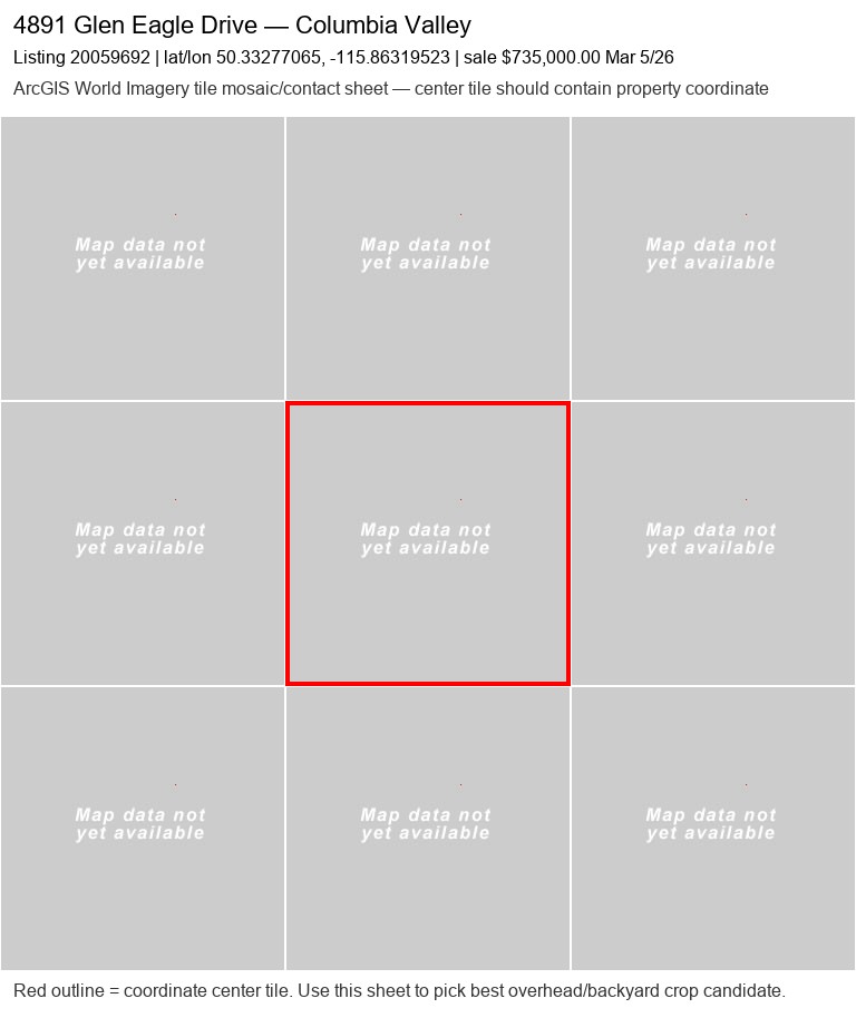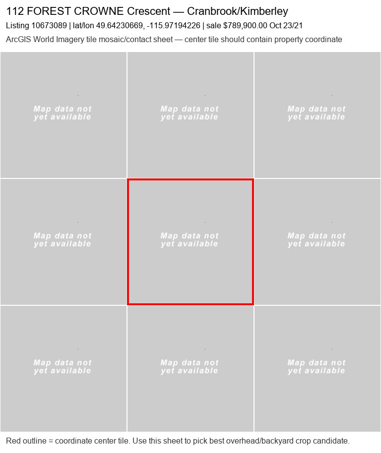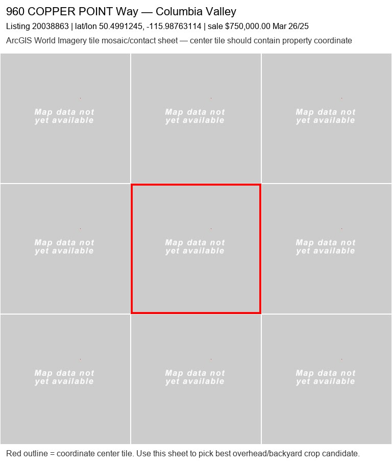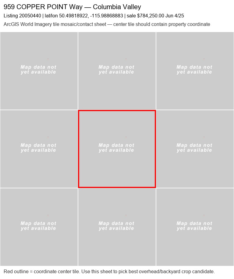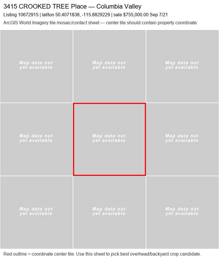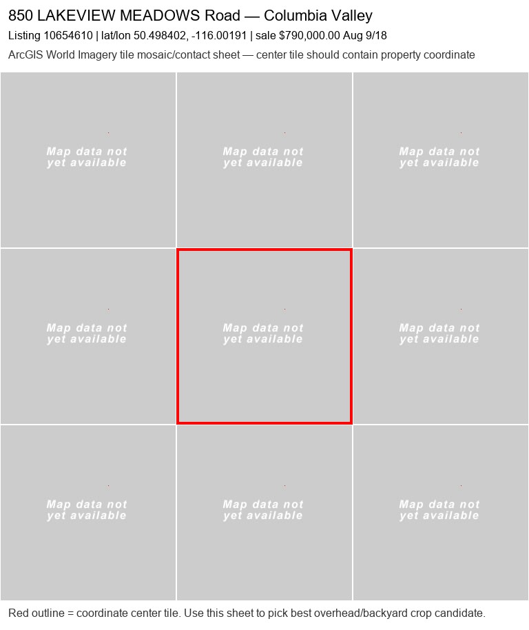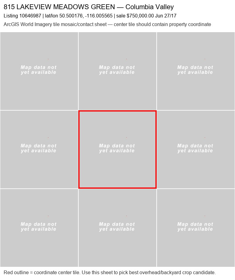 | 350 Legacy Lookout20050060 | ArcGIS overhead unavailable | — | No | 0 / 9 | — | — | listing |
