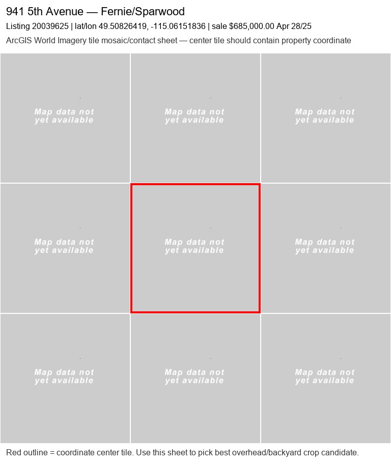 | 365 Legacy Lookout20087063 | ArcGIS overhead unavailable | — | No | 0 / 9 | — | — | listing |