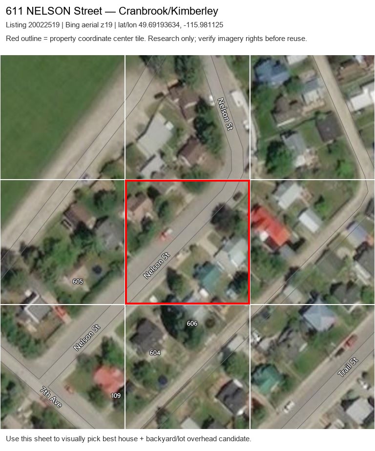 | 611 NELSON Street20022519 | Bing overhead | 4,6,7,10,11,26 | no | 0 / 9 | yes | — | listing |